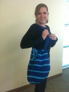 This bag was a total whim. I found the pattern after getting frustrated with other hat patterns for my castmate Kira. This seemed so simple and it was. It just took a bit of time given the amount of the project.